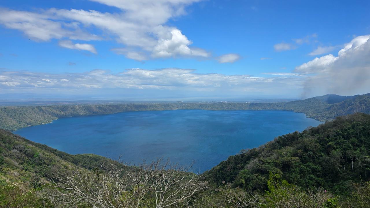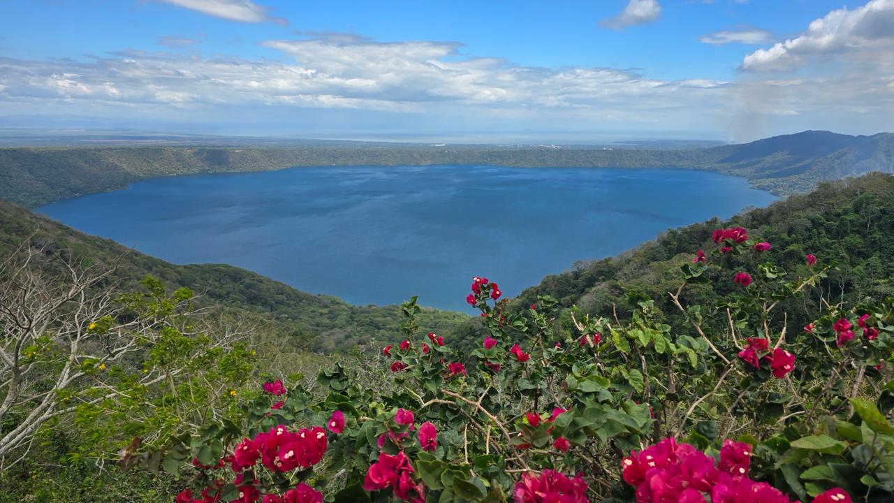 Поднимемся на смотровую площадку Санта-Катарина с прекрасным видом на озеро Апойо, которое на самом деле является кратером вулкана.